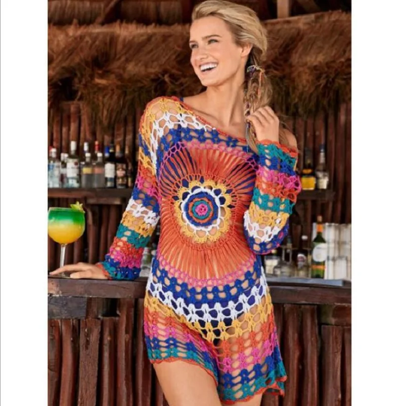 HIGH QUALITY Knitted hollow beach fishing net dress hand hooks beach long sunscreen dress